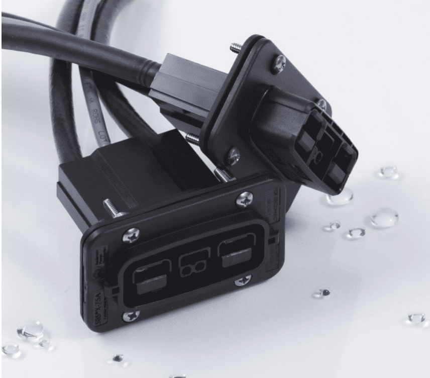 Ruggedization is very important for this type of equipment. IP rated and sealed construction are essential to protect the connection from industrial environments, which can include moisture, debris, and vibration, and may operate outdoors. Anderson Power’s SBSXPRO 3 Power/8 Signal sealed connectors were specifically designed for outdoor operating conditions. This rugged connector has positive metal latches to safeguard against accidental disconnects, while its IP68 rating provides protection from water.